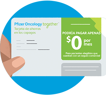Los Programas de ahorros en los copagos de Pfizer Oncology Together proporcionan ayuda económica con respecto a deducibles pagados de su bolsillo, gastos de copago o coseguro para pacientes elegibles a los que se les han recetado determinados medicamentos de Pfizer Oncology de administración oral e inyectables. Se aplican límites, términos y condiciones.*